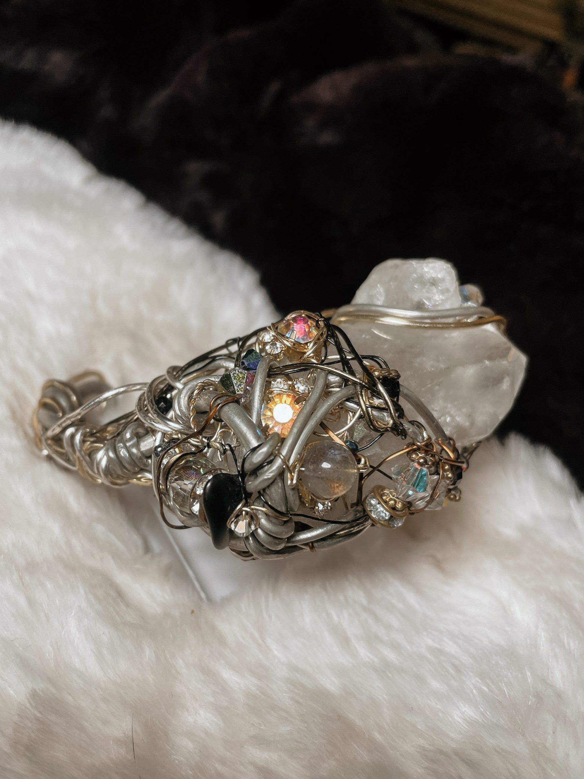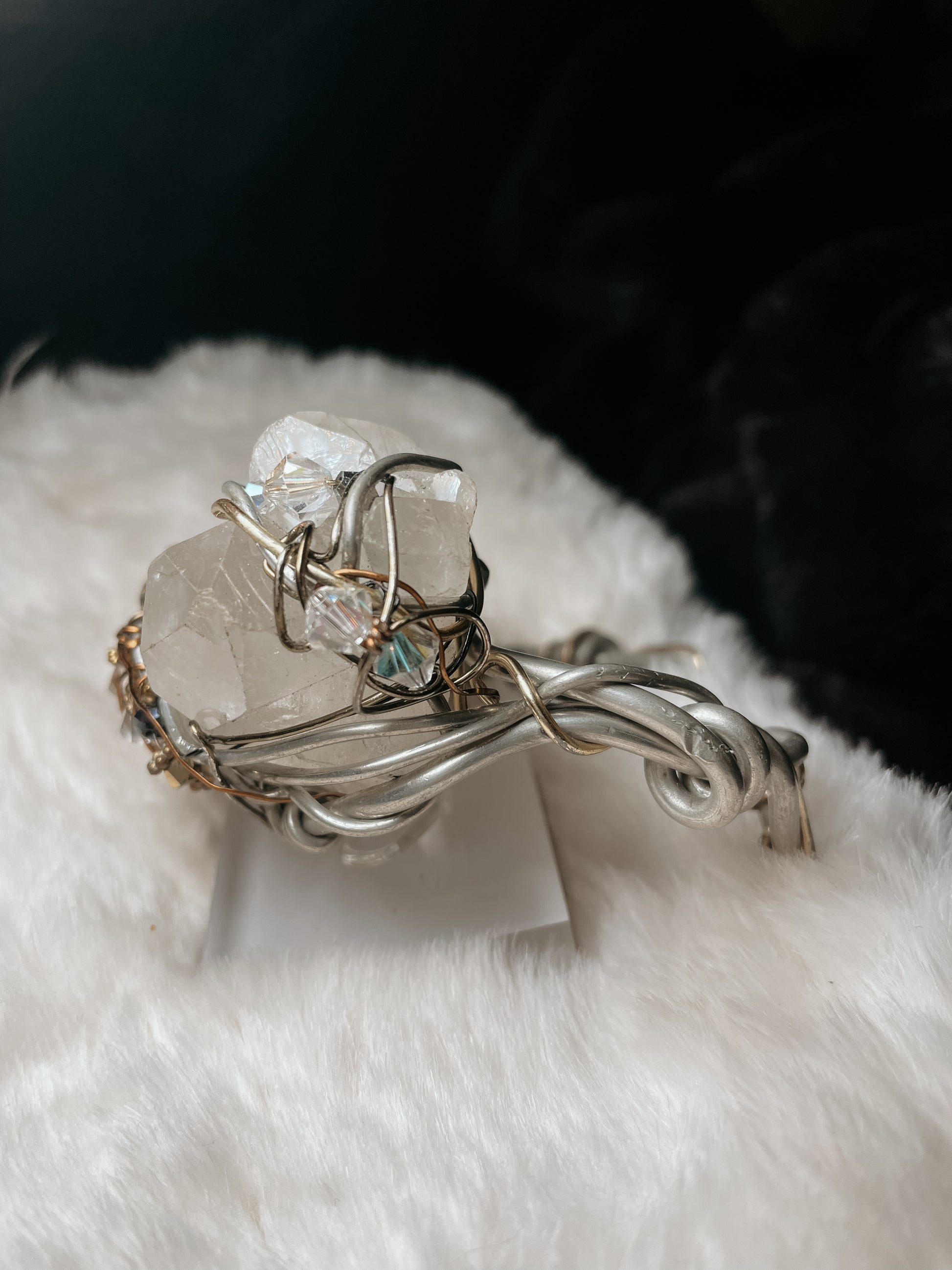 Swarovski crystals add refined brilliance and light reflection, elevating the piece with subtle luxury while enhancing energetic flow.