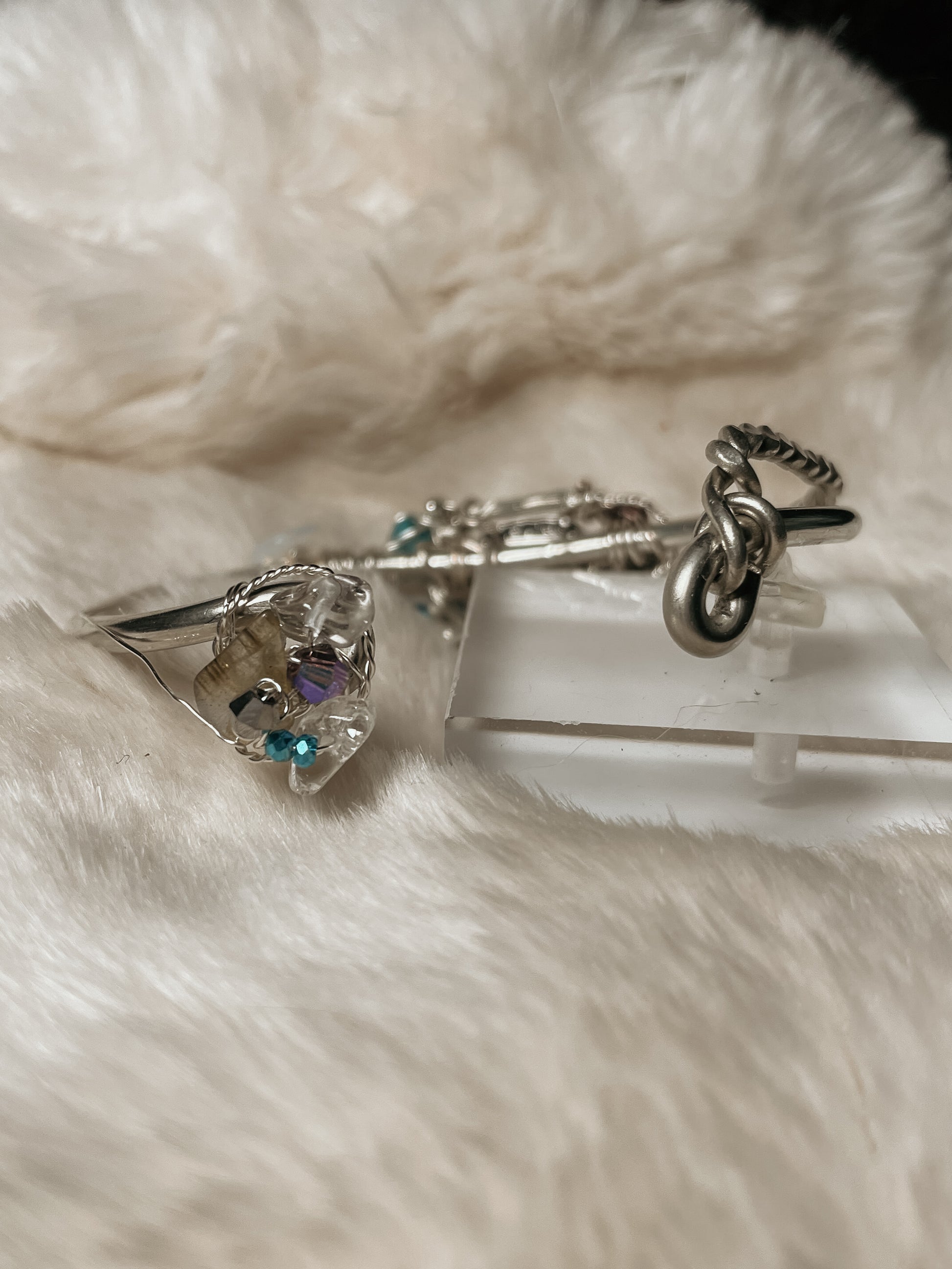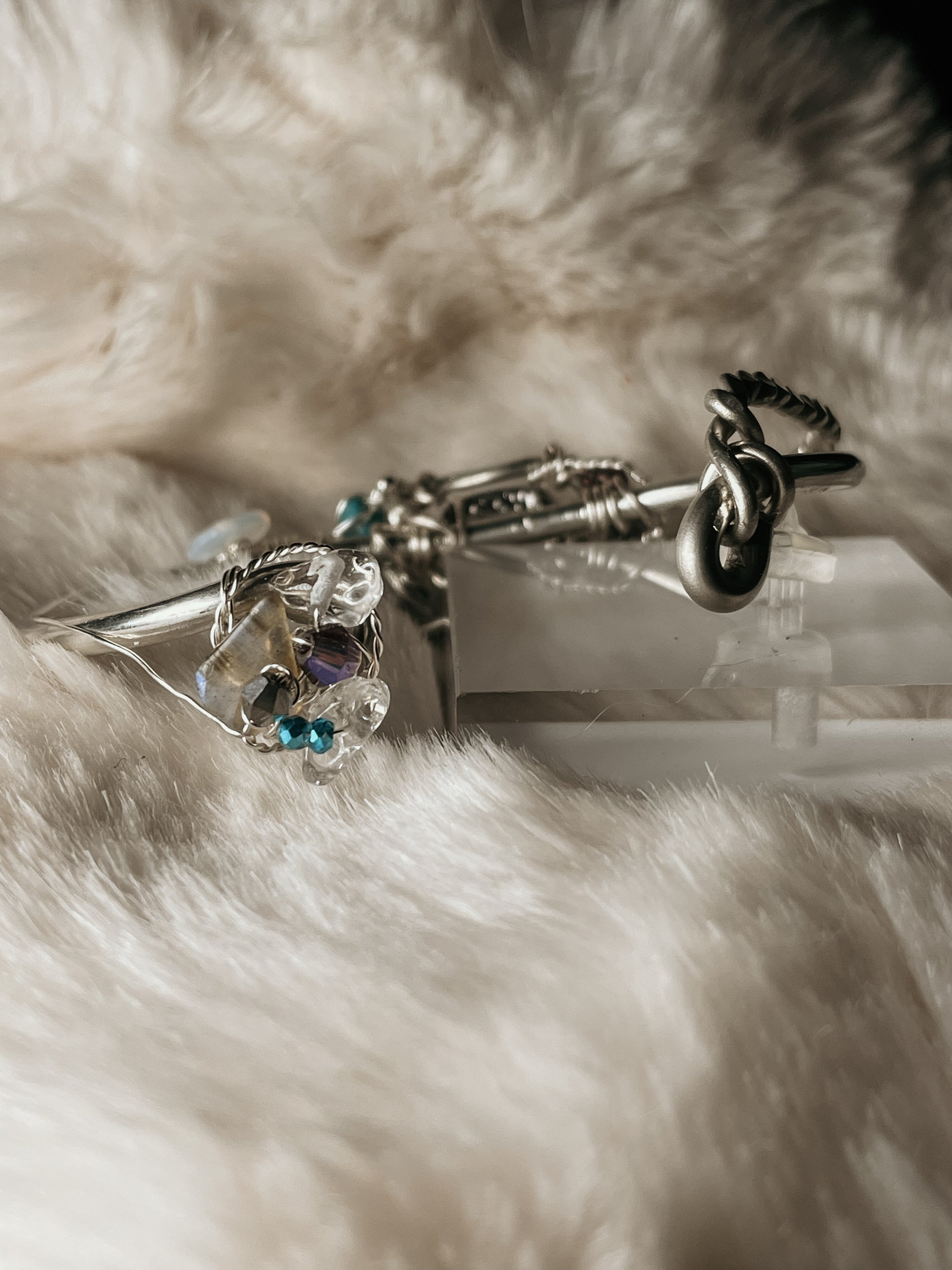 - A small Moonstone chip is tucked into the design as a quiet counterbalance — representing intuition, adaptability, and trust in one’s inner compass.