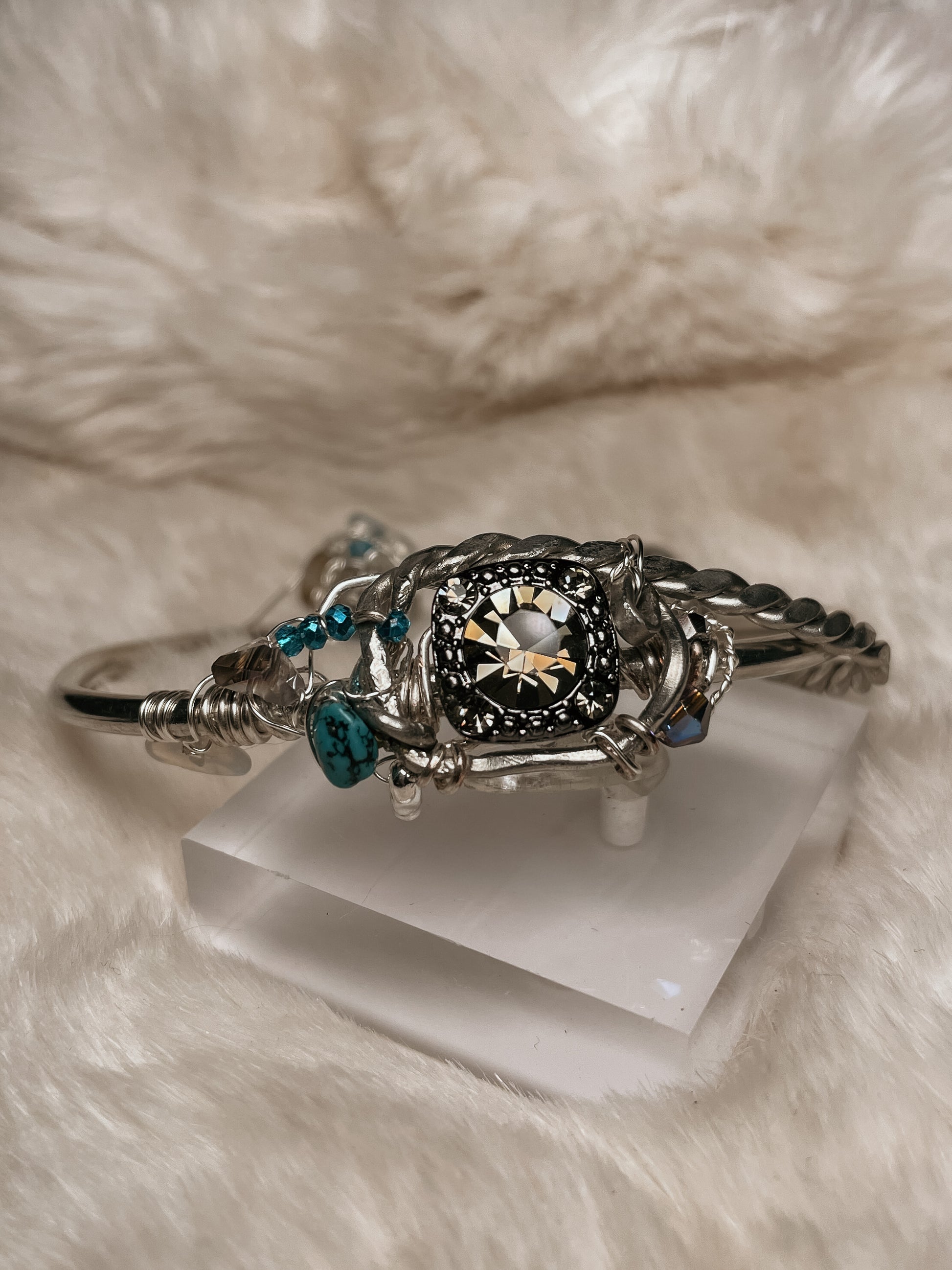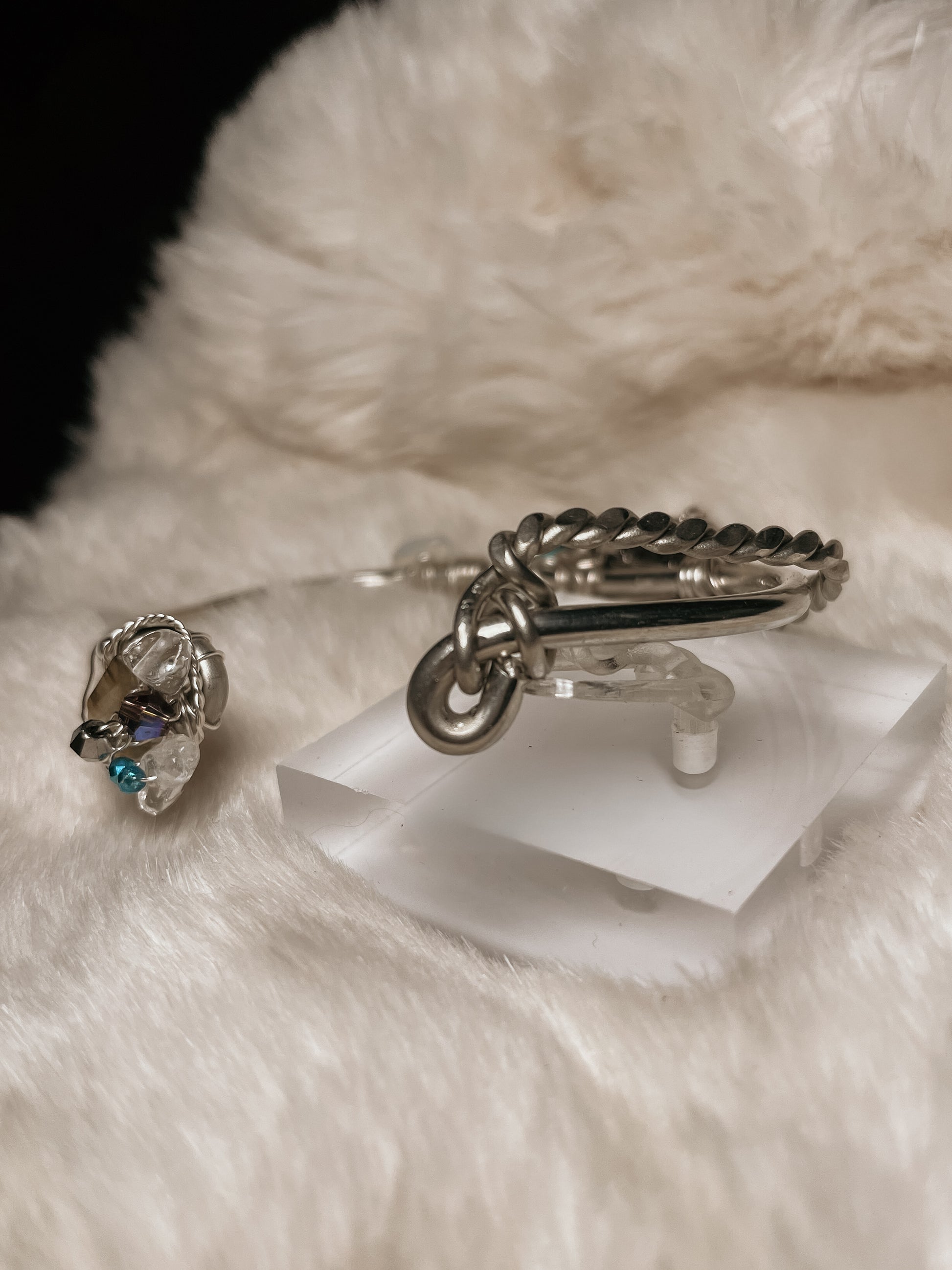 Brave is a bracelet that embodies courage through authenticity — strength that does not harden, but holds its shape with grace. Handcrafted in Argentinian silver, this piece features a mix of twisted, braided, and hammered wire, giving it a tactile, lived-in beauty that feels both protective and expressive.