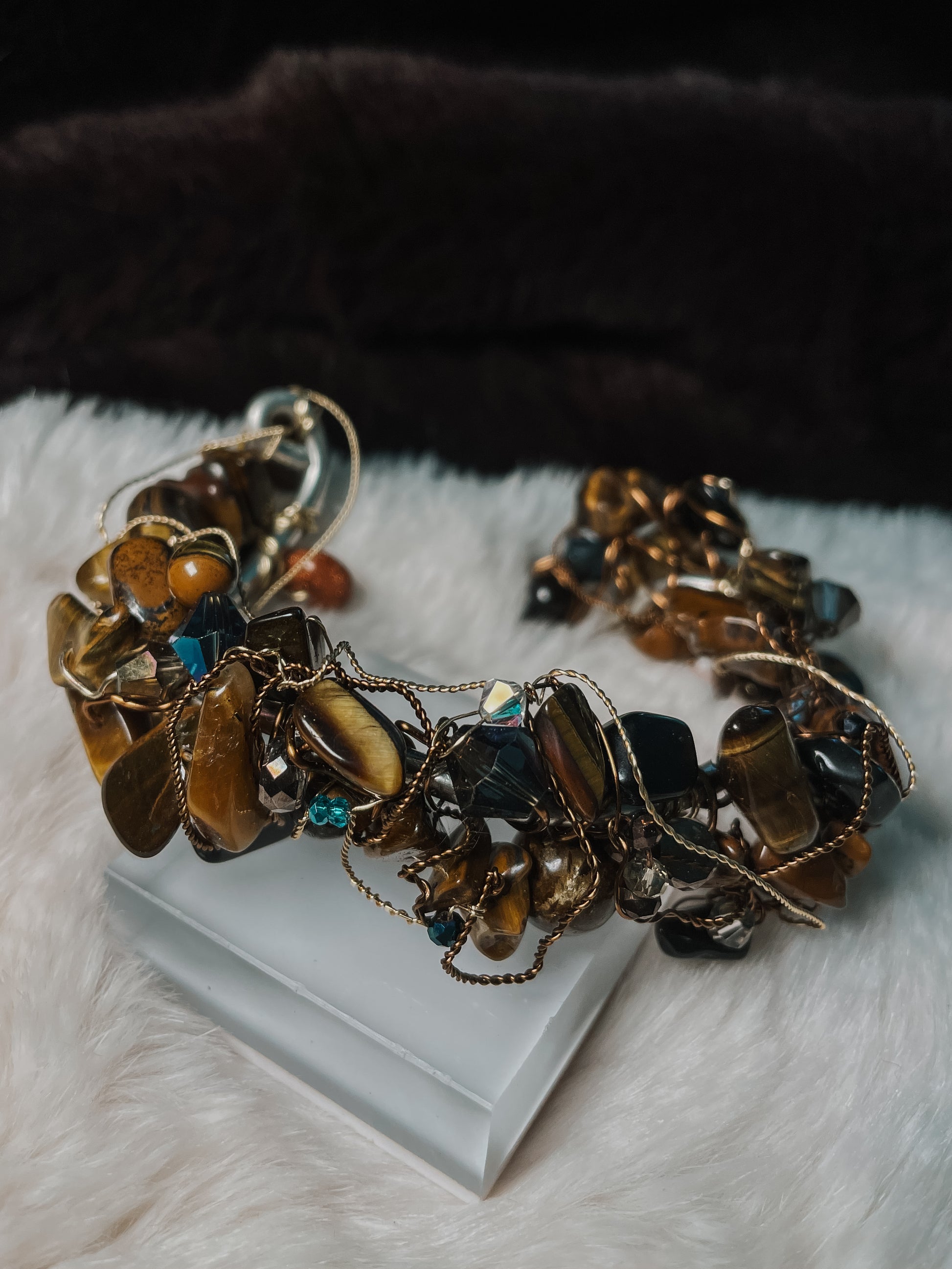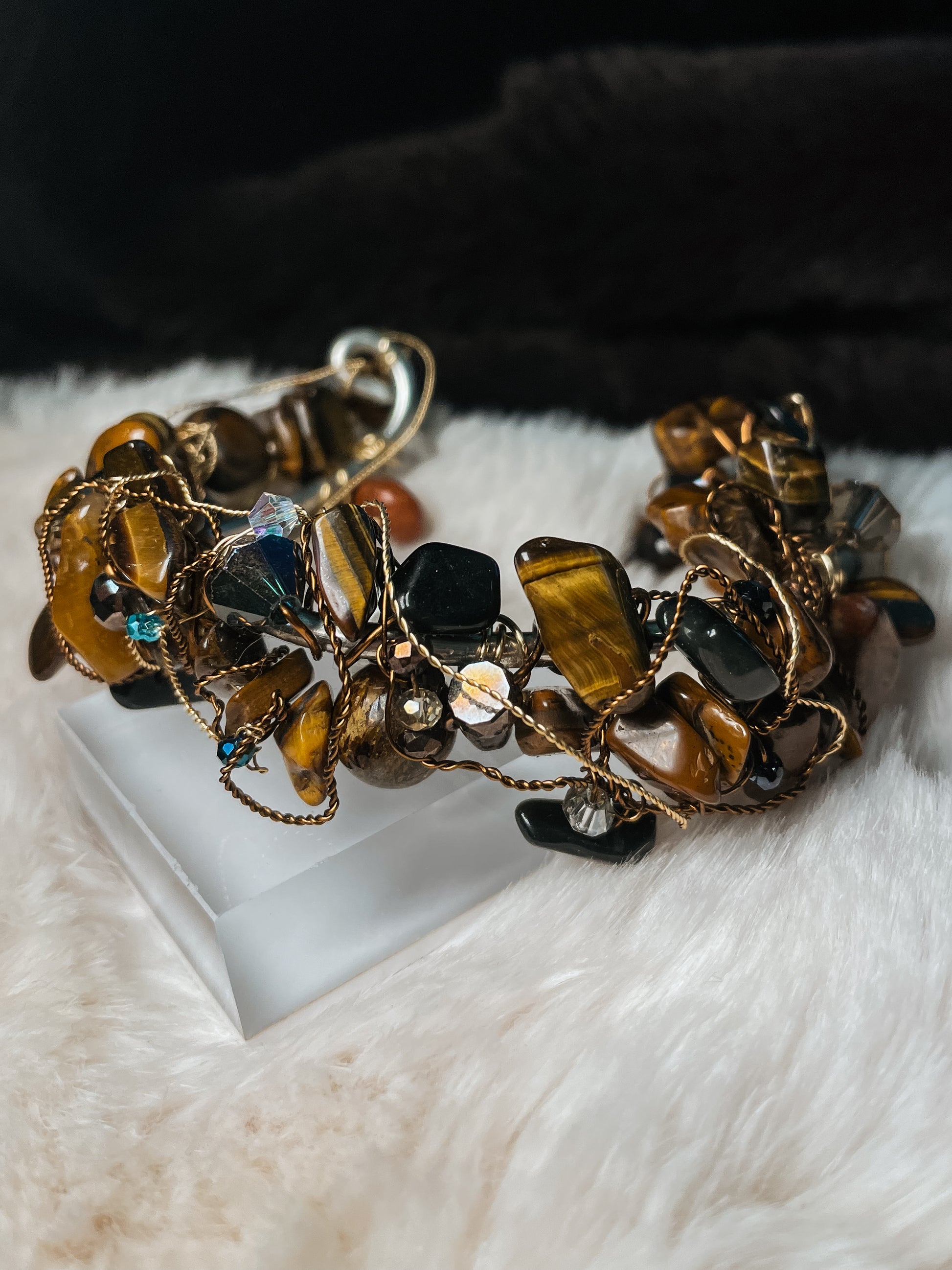 Intention is a handcrafted statement bracelet designed to align focus, motivation, protection, and manifestation into one wearable ritual. Made with Argentinian silver, this piece is intentionally layered with powerful stones chosen to support clarity, confidence, and purposeful action. The bracelet is designed to be worn multiple ways, allowing you to shift the energy and aesthetic depending on how you style it.