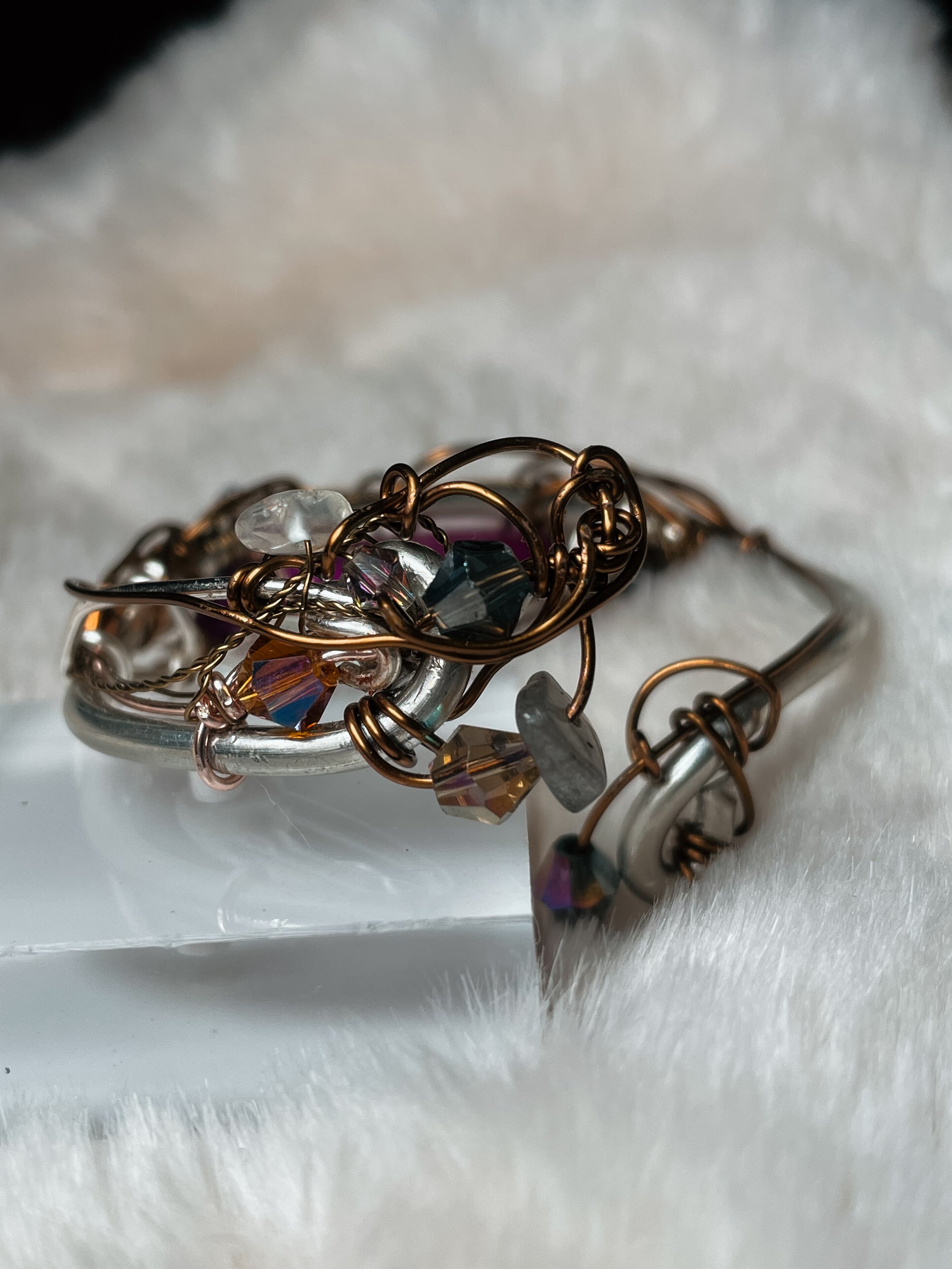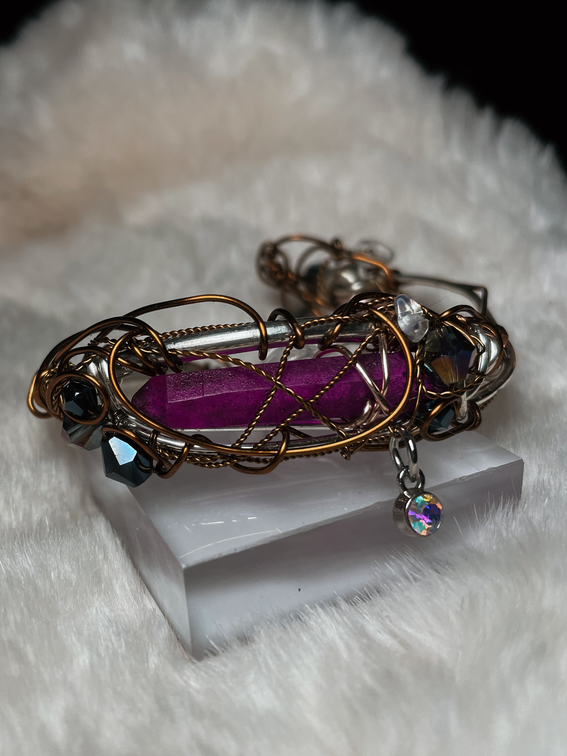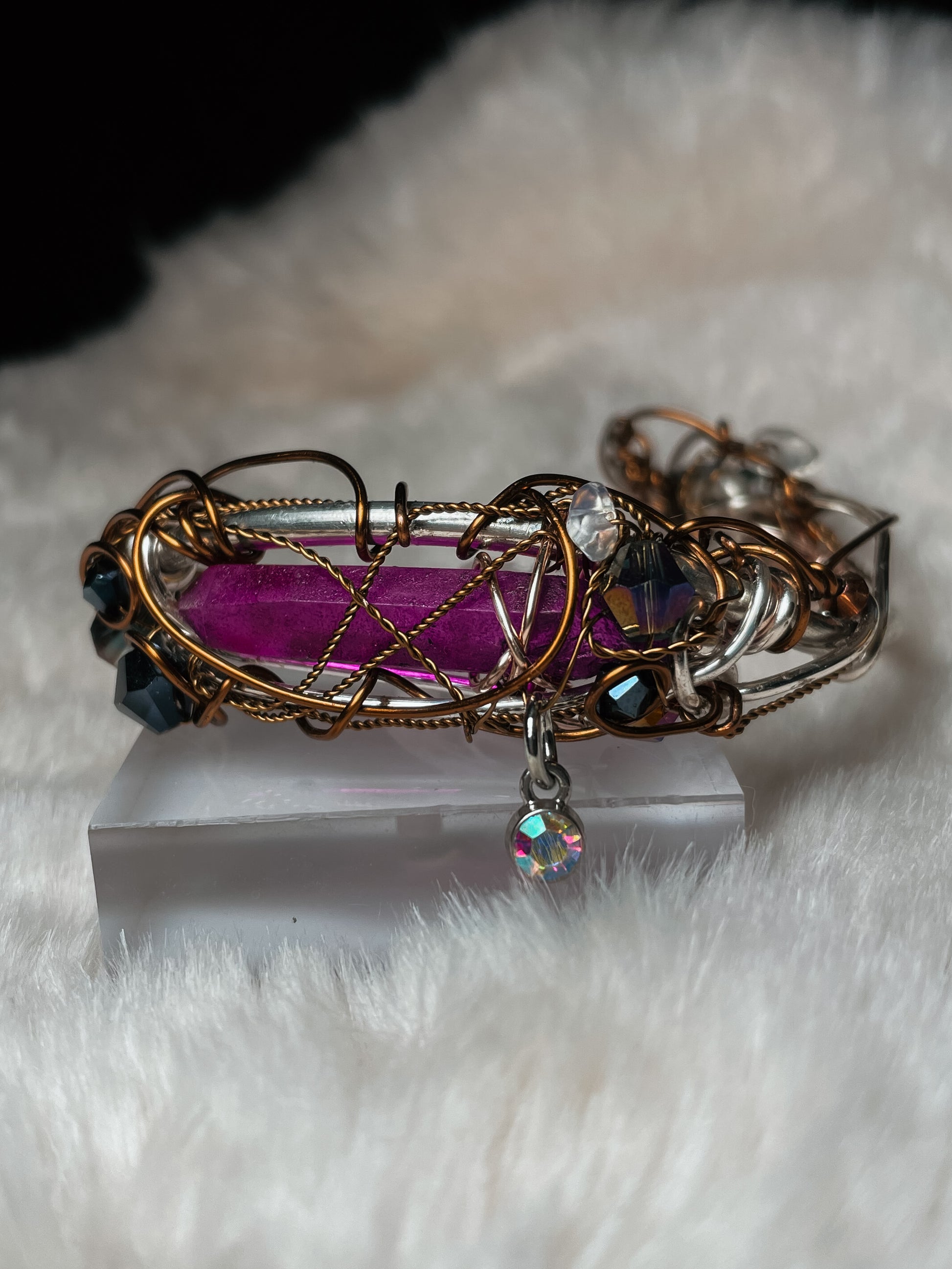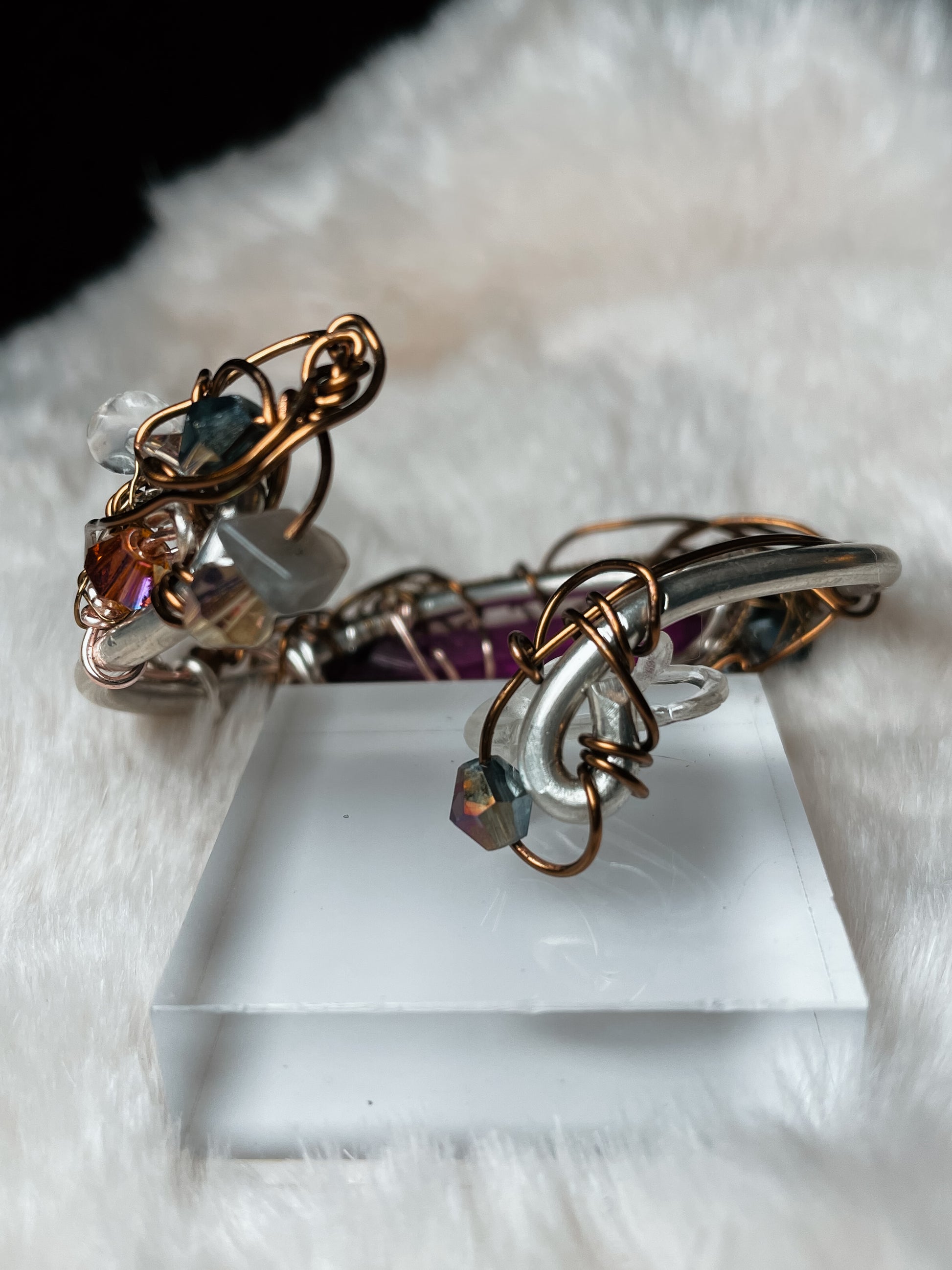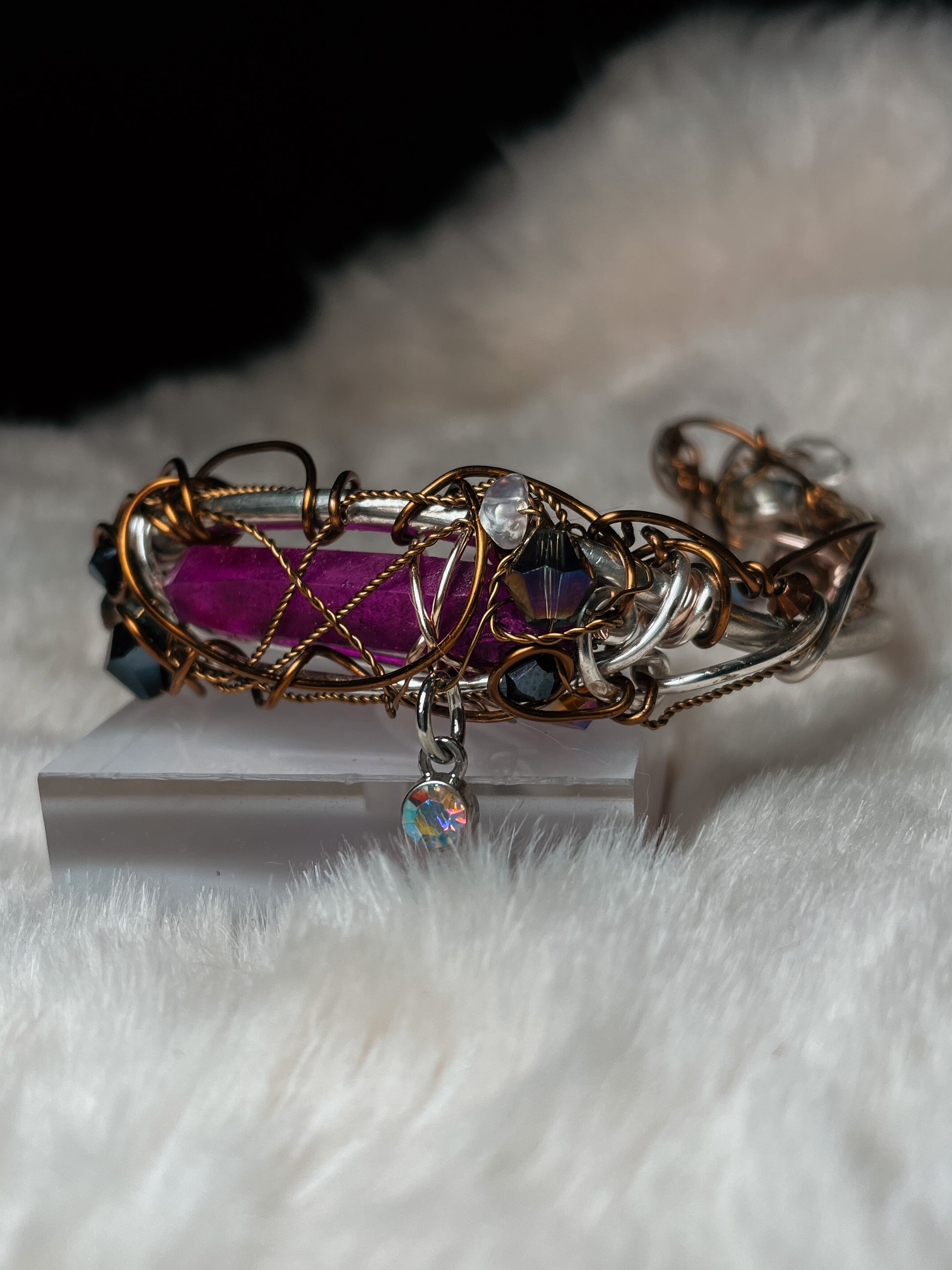 Maleficent is a one-of-a-kind, handcrafted crystal bracelet designed to embody power, clarity, and elevated intention. Made with Argentinian silver, this statement piece features intricate, sculptural wire work that balances strength with fluidity, creating a bold yet refined form of wearable art.