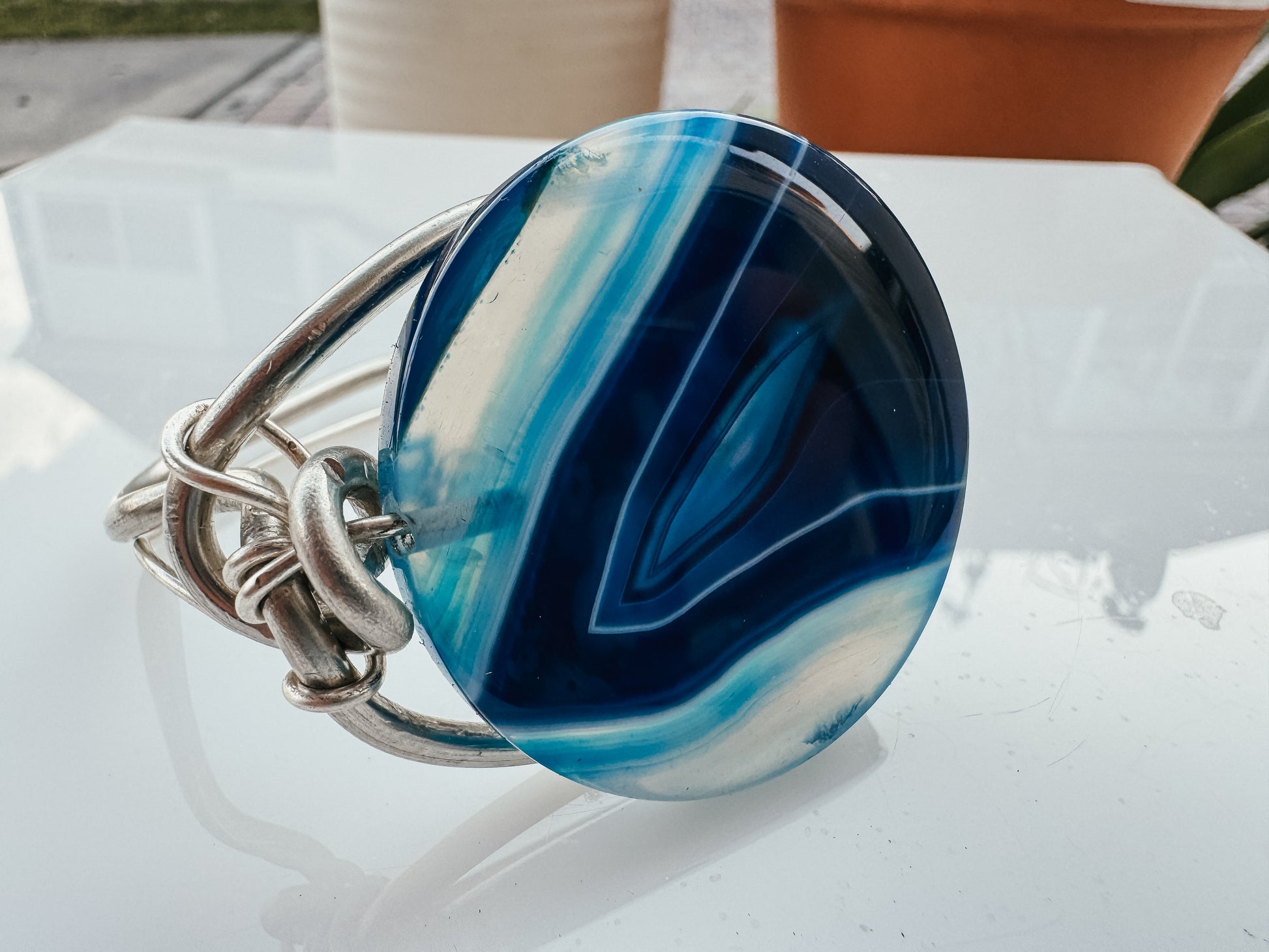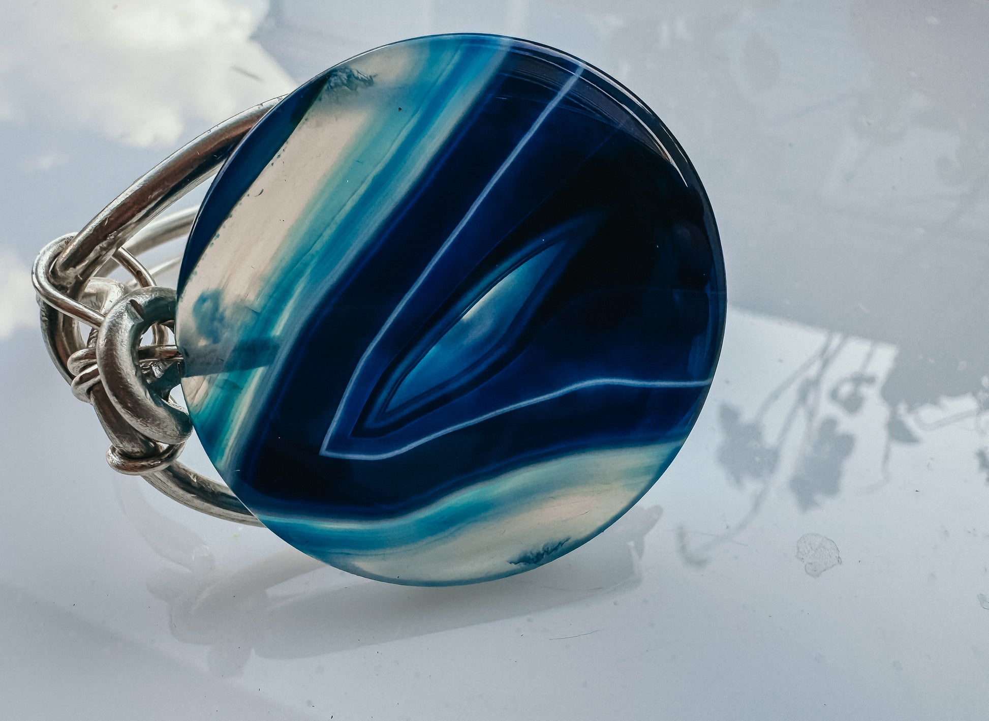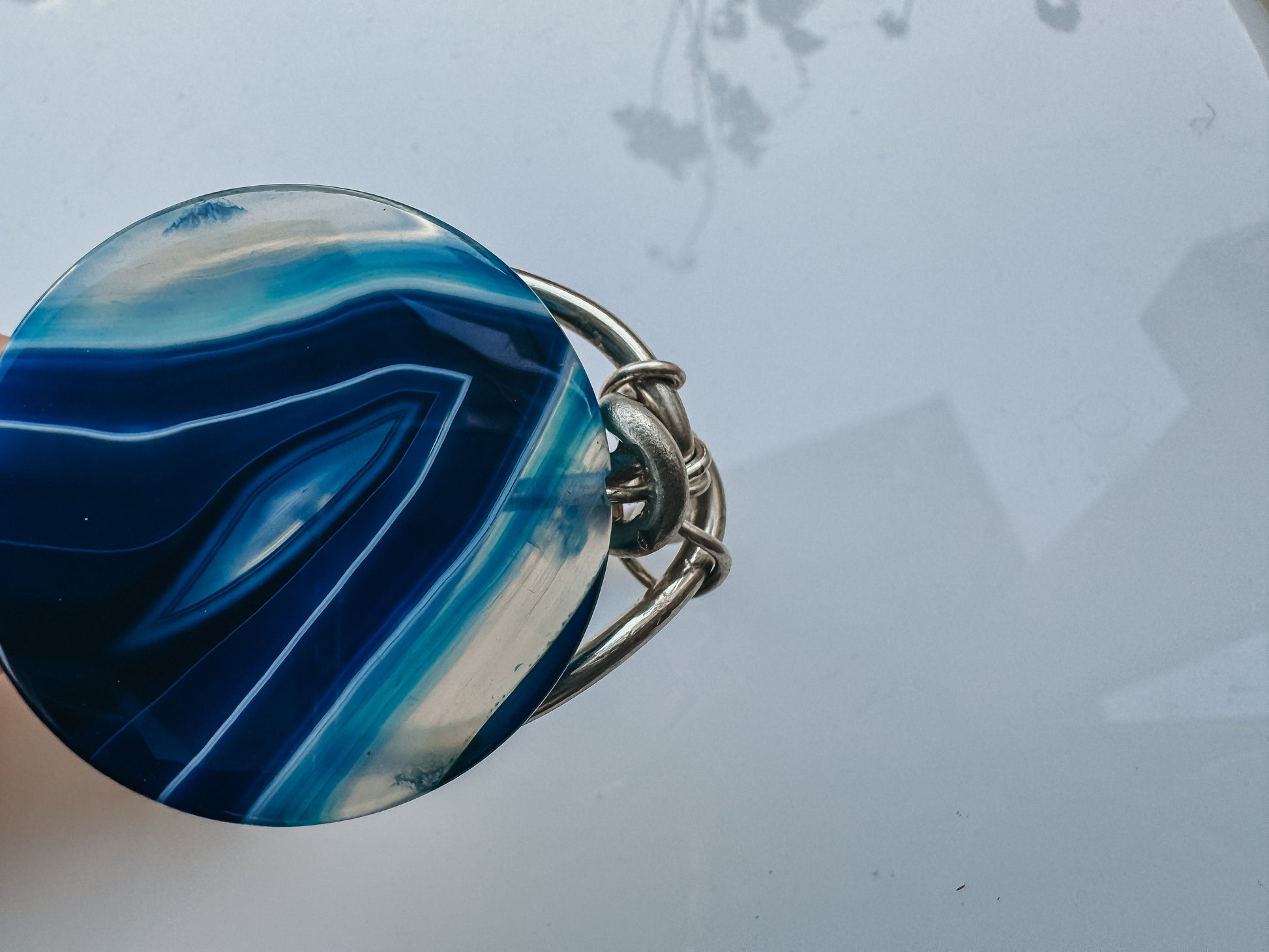 The Argentinian silver setting complements the agate beautifully, adding a touch of elegance and sophistication. This piece not only serves as a visual delight but also as a source of calm and focus, making it a perfect accessory for both daily wear and special occasions.