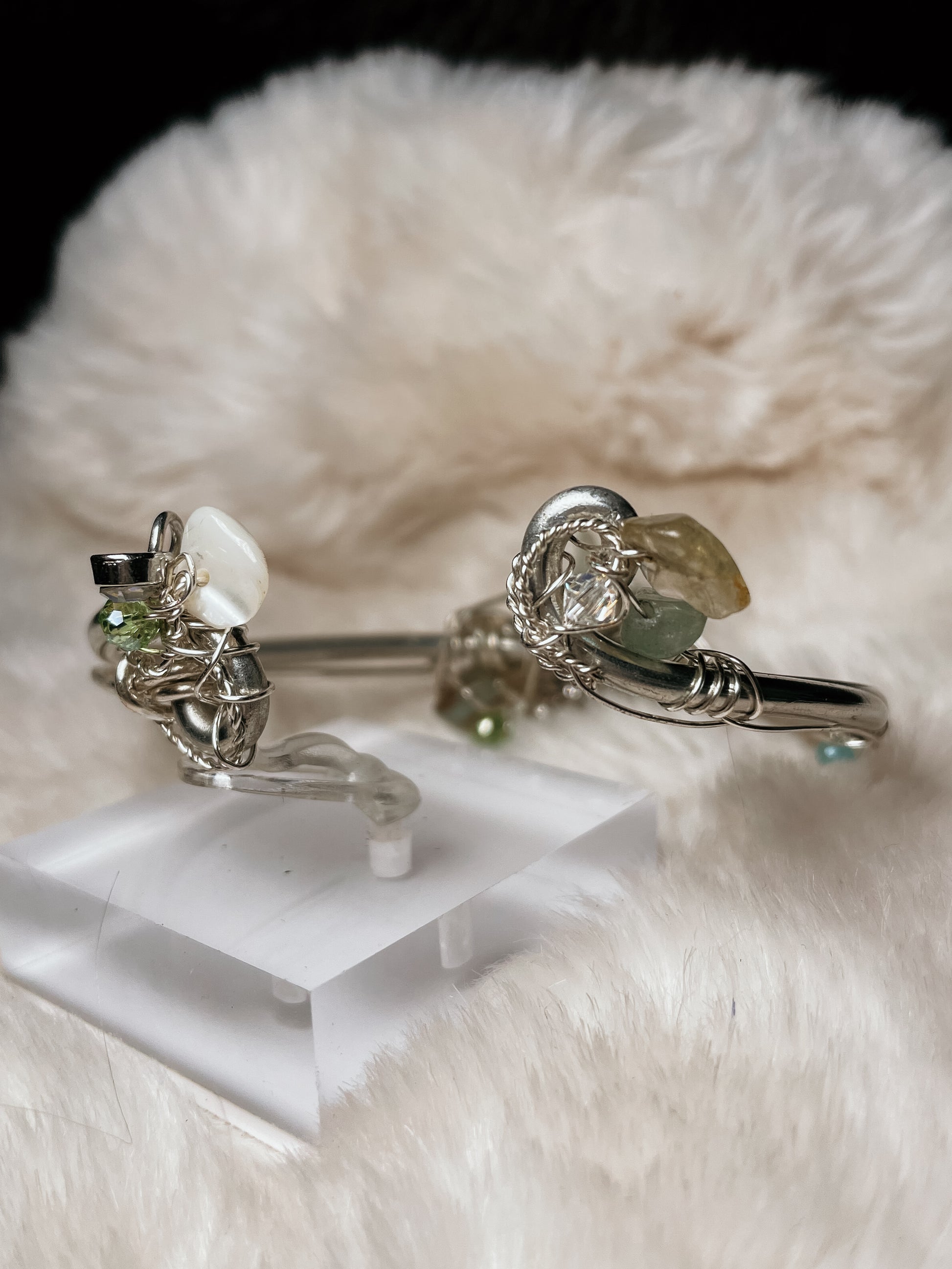 Surrounding elements of Mother of Pearl bring softness and intuition to the design, while green aventurine accents ground the piece in steady momentum and opportunity. Clear crystal details catch light with every movement, echoing the moment when effort finally turns into recognition.