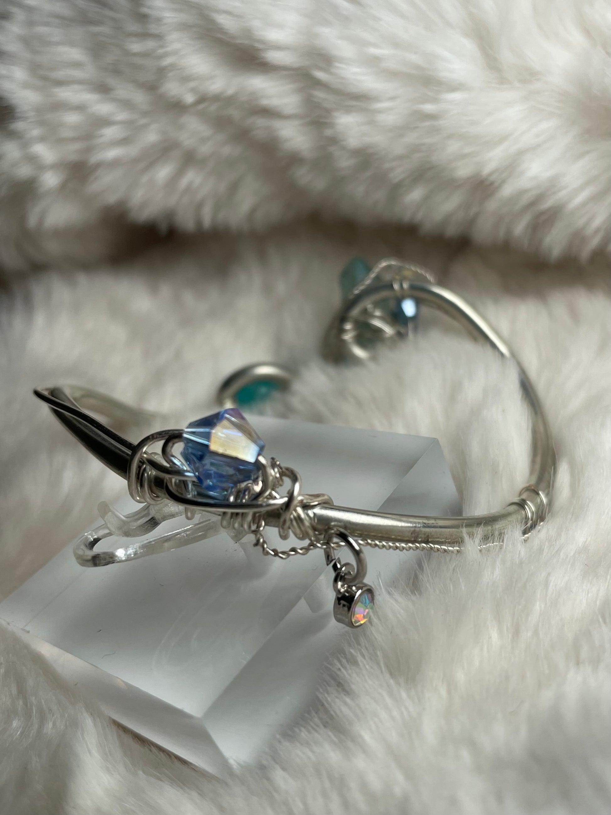 This bracelet is a study in balance: polished and raw, calm and powerful, modern and ancient. Designed to be worn multiple ways, it transforms with you—sometimes bold and architectural, sometimes soft and mystical—just like the sea itself.