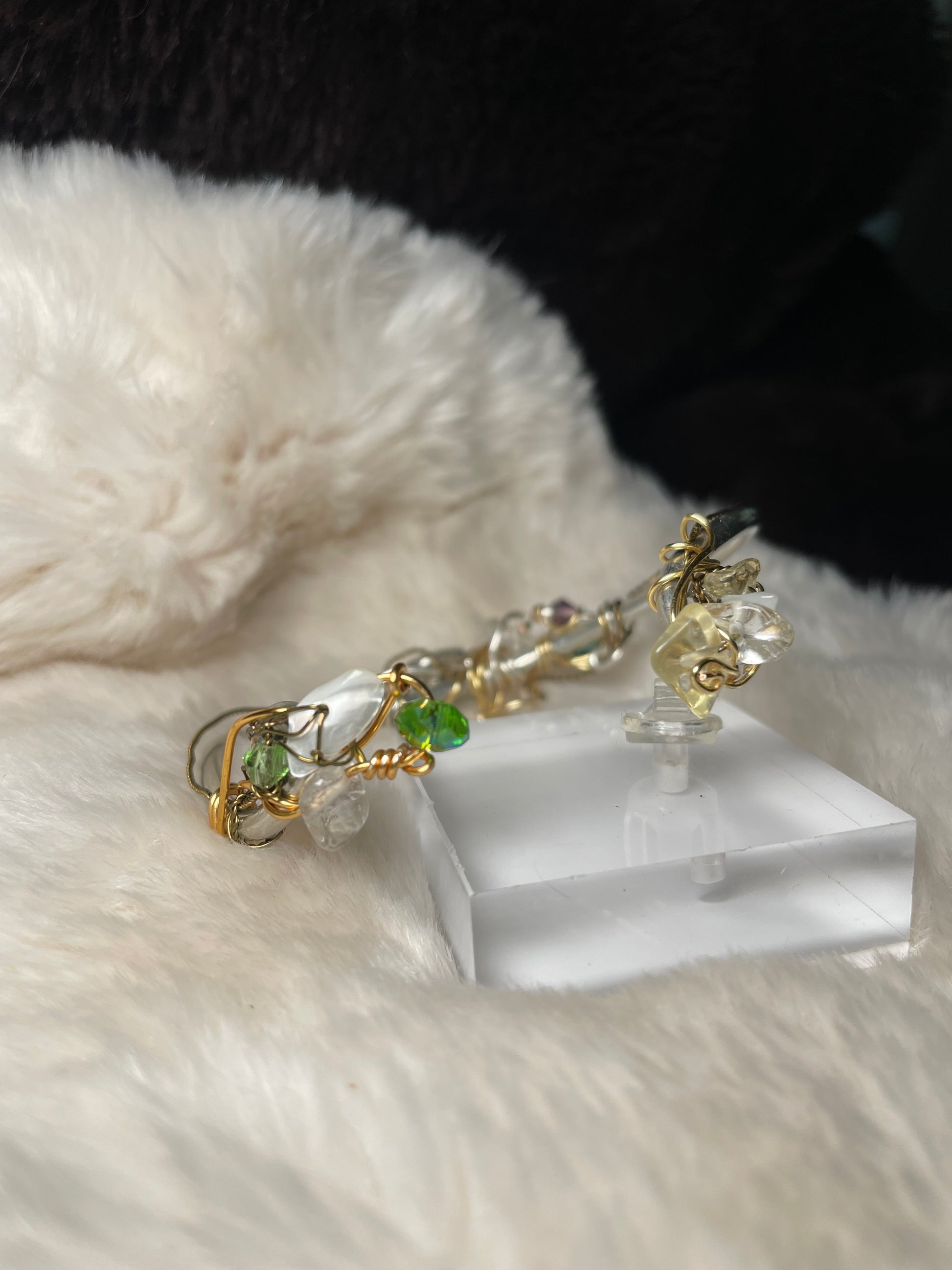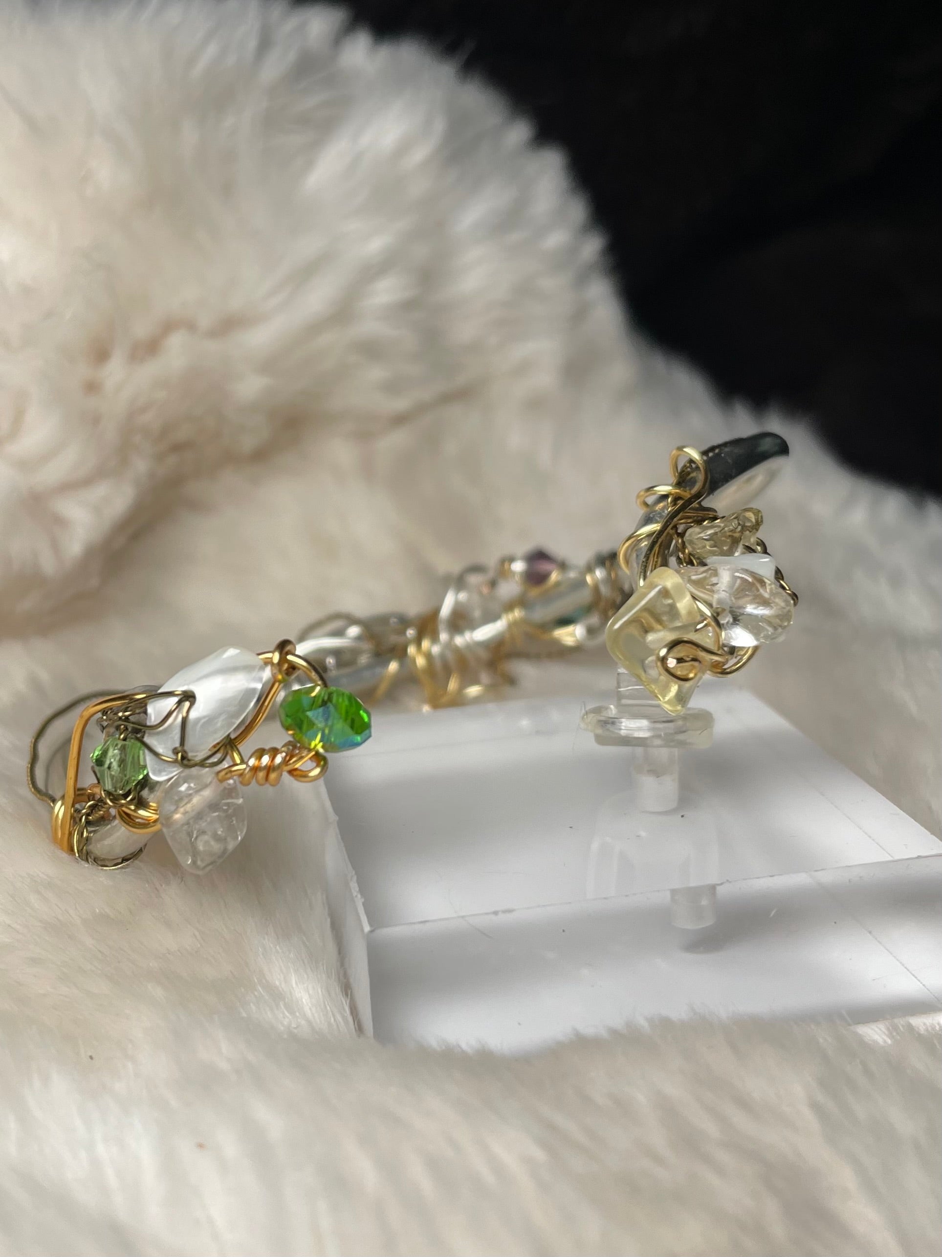 Clear quartz chips weave through the structure, amplifying intention and light, while a hidden citrine at the back acts as a quiet source of joy and confidence — a reminder that magic doesn’t need to be loud to be powerful.